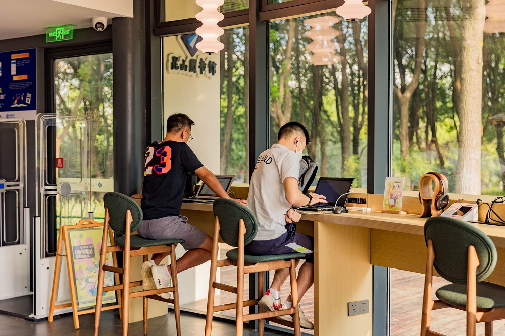 书+咖啡,图书馆开在森林里,文艺之中透着神秘。
