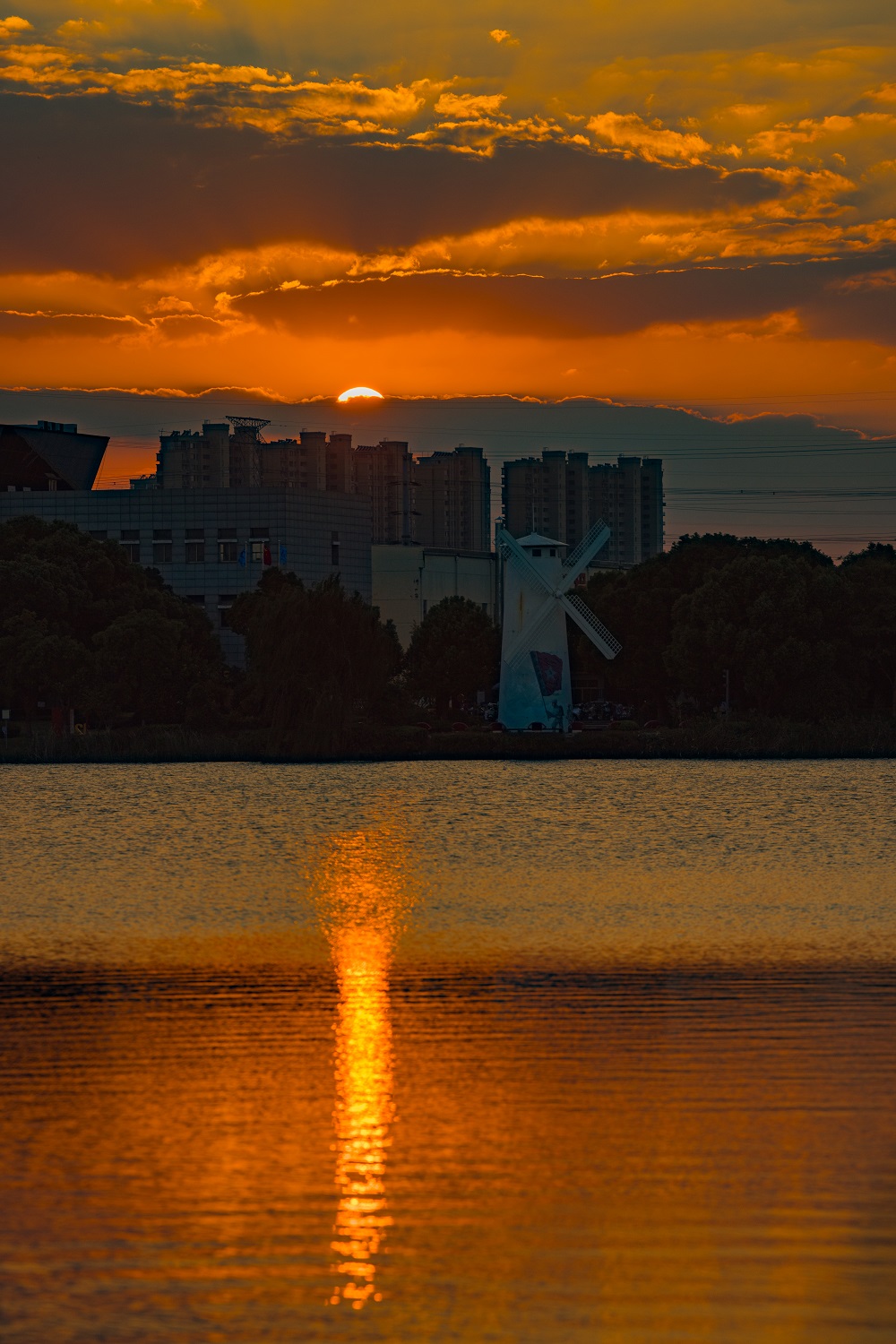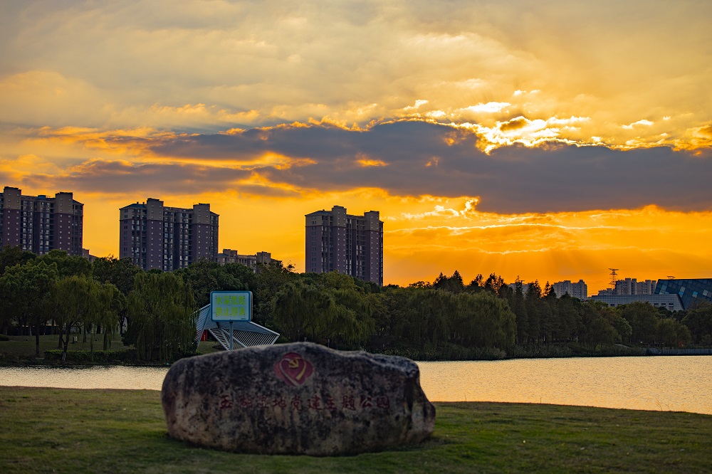邂逅了夕阳下的玉湖。风轻轻,云淡淡,一轮夕阳,泛着红晕,湖面酡红如醉。