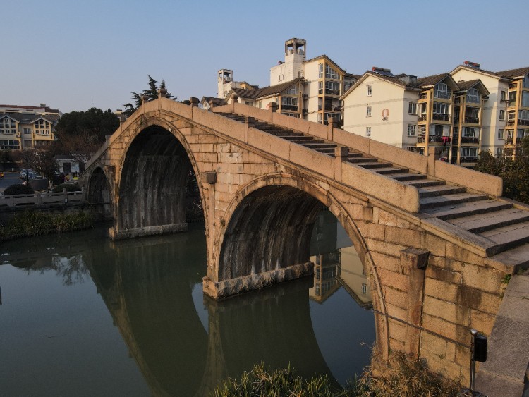 昆山城区最高的古桥,犹如一条玉龙,卧在水波之上,沟通南北。